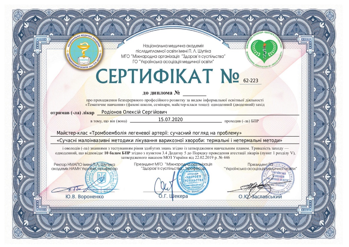 надає консультації та амбулаторне лікування дорослим людям поставлених діагнозів за допомогою передових малоінвазивних методик на базі
